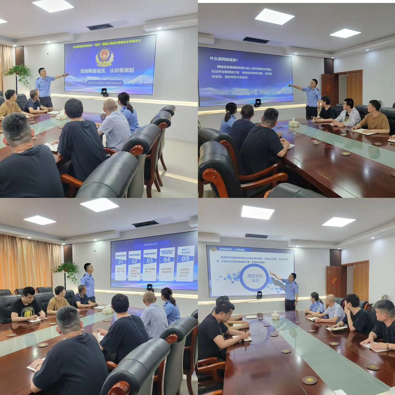 2024年6月13日上午,南京市公安局浦口分局石橋派出所組織專業(yè)宣傳警力到我公司進(jìn)行網(wǎng)絡(luò)安全教育宣傳,向企業(yè)員工宣講什么是網(wǎng)絡(luò)謠言,網(wǎng)絡(luò)謠言的分類,發(fā)布網(wǎng)絡(luò)謠言的處罰種類以及怎樣避免網(wǎng)絡(luò)謠言的發(fā)生。